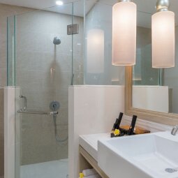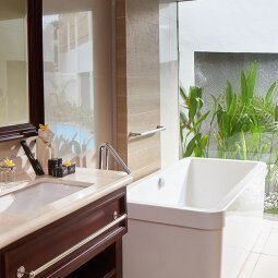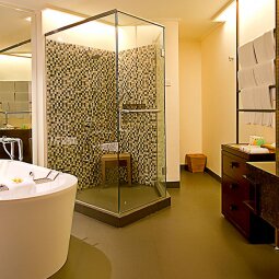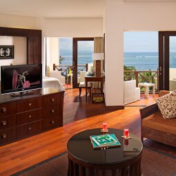 Просторный люкс площадью 85 кв. м и максимальной вместимостью 6 человек. В распоряжении гостей балкон с гидромассажной ванной и гостиным уголком, а также телевизор с плоским экраном и международными каналами. Собственная ванная комната с ванной и душем укомплектована бесплатными туалетно-косметическими принадлежностями. Этот люкс расположен в 2 минутах ходьбы вдоль пляжа от главного здания. Гостям предоставляют следующие удобства и услуги: – приветственный напиток и холодные полотенца по прибытии; – 1 бутылка минеральной воды в день; – завтрак «шведский стол»; – ежедневные мероприятия, в том числе аэробика, кулинарные мастер-классы, уроки батика, нарезки фруктов и т.д.; – ежедневное пользование услугами бизнес-центра в течение 20 минут и доступ в лаундж Cools; – приготовление постели ко сну; – детский клуб/вход на игровую площадку и ежедневные детские мероприятия. За дополнительную плату возможна организация трансфера от/до аэропорта и предоставление снаряжения для водных видов спорта (кроме моторных средств).