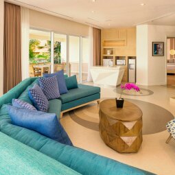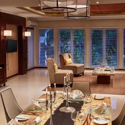 Апартаменты жилой площадью 170 кв. м и максимальной вместимостью 10 человек. В распоряжении гостей гидромассажная ванна с видом на Индийский океан и главный бассейн. Собственная ванная комната с ванной и душем укомплектована бесплатными туалетно-косметическими принадлежностями. В числе удобств телевизор с плоским экраном и международными каналами. Эти апартаменты расположены в 2 минутах ходьбы вдоль пляжа от главного здания. Гостям предоставляют следующие удобства и услуги: – приветственный напиток и холодные полотенца по прибытии; – 1 бутылка минеральной воды в день; – завтрак «шведский стол»; – ежедневные мероприятия, в том числе аэробика, кулинарные мастер-классы, уроки батика, нарезки фруктов и т.д.; – ежедневное пользование услугами бизнес-центра в течение 20 минут и доступ в лаундж Cools; – приготовление постели ко сну; – детский клуб/вход на игровую площадку и ежедневные детские мероприятия. За дополнительную плату возможна организация трансфера от/до аэропорта и предоставление снаряжения для водных видов спорта (кроме моторных средств).