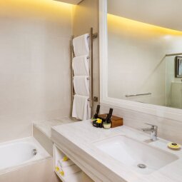 В числе удобств отдельная спальня и гостиная, а также просторная ванная комната. Гостям предоставляют следующие удобства и услуги: – приветственный напиток и холодные полотенца по прибытии; – 1 бутылка минеральной воды в день; – завтрак «шведский стол»; – ежедневные мероприятия, в том числе аэробика, кулинарные мастер-классы, уроки батика, нарезки фруктов и т.д.; – ежедневное пользование услугами бизнес-центра в течение 20 минут и доступ в лаундж Cools; – приготовление постели ко сну; – детский клуб/вход на игровую площадку и ежедневные детские мероприятия. За дополнительную плату возможна организация трансфера от/до аэропорта и предоставление снаряжения для водных видов спорта (кроме моторных средств).
