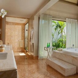 Отельный комплекс состоит из трех отелей уровня 5 звезд Mulia Resort, The Mulia и Mulia Villas.