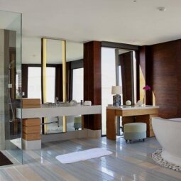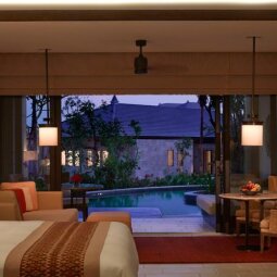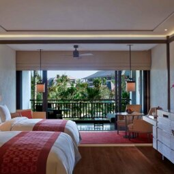 Этот пятизвездочный отель расположился на юге тропического острова у побережья Нуса Дуа. Из окна гости отеля смогут увидеть привлекательную гладь Индийского океана и божественную гору Агунг. Сюда приезжают как для семейного отдыха, так и для того чтобы насладится медовым месяцем.