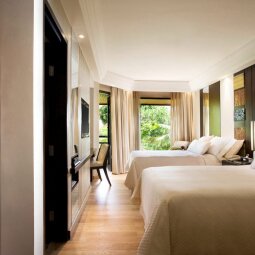 334 номера и Suites: Deluxe Room, 34 Family Suite, One-Bedroom Suites, Two-Bedroom Suites. В номерах: ванна/душ, принадлежности для ванны, зеркало для бриться и make - up, фен, кондиционер, спутниковое ТВ, радио, телефон, мини - бар, набор для приготовления чая или кофе, сейф, утюг, гладильная доска. Все номера оборудованы балконом или террасой.