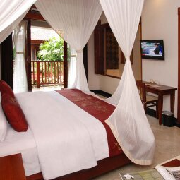 34 Deluxe Room, 96 Deluxe Bungalow Room, 14 Royal Room, 3 Bungalow Suite. В номерах: ванна/душ, принадлежности для ванны, фен, кондиционер, спутниковое ТВ, телефон с международной связью, сейф, холодильник, мини - бар, набор для приготовления чая или кофе.