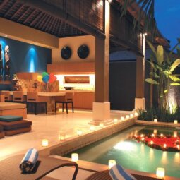 ресторан Cempaka - международная и азиатская кухня, ресторан Soka, ресторан Ratna, ресторан Wratnala - открытая сцена, где проводятся балинезийские спектакли по вечерам, бар Cempaka, лобби -бар Rijasa, бар Sriwedari.