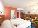 От отеля до центра легко добраться на общественном транспорте. Остановка метро (Линия U2) расположена напротив отеля (станция “Messe Prater”), откуда до исторического центра ехать всего около 5 мин. (3 остановки на метро). В 7 минутах езды от отеля находится зона отдыха Copa Cagrana, где расположились многочисленные бары, кафе, рестораны и ночные клубы.