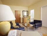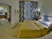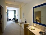 Все номера отеля – сьюты (40 м2- 50 м2) с отдельной спальней и гостиной. В спальне можно поставить как кровать King Size так и 2 раздельные кровати. В просторной гостиной есть всё для уютного отдыха – Wi Fi, удобный диван, барная стойка со встроенной раковиной и водопроводным краном, мини – бар, микроволновая печь. Во всех сьютах также предусмотрено: 2 телевизора со спутниковыми каналами, климат- контроль, сейф, фен.