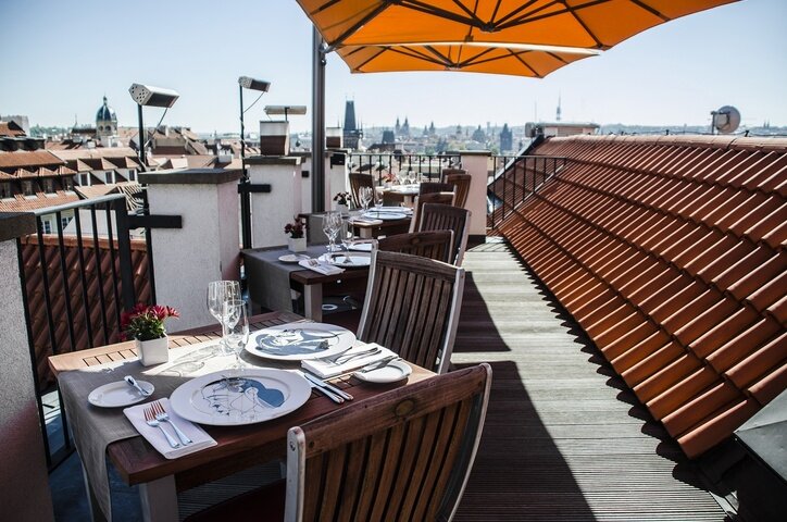 Ресторан CODA предлагает международные и традиционные чешские блюда, при приготовлении которых применяются новые технологии обработки сырья.Салон ресторана оформлен в элегантном стиле Art Deco. В летние месяцы гости могут воспользоваться террасой на крыше ресторана, с которой открывается прекрасный вид на Пражский град и церковь св.Микулаша.