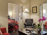 В цветовой гамме оформления отеля доминируют черный и белый. Дизайн интерьера сочетает классический и современный стили, черный мрамор и ореховый паркет. В зимнее время в одной из гостиных разжигают камин, и гости могут провести вечер в уютной домашней атмосфере.