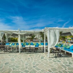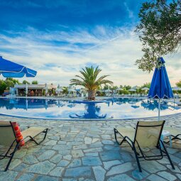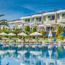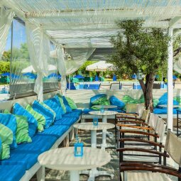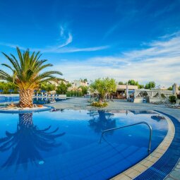 В современно оформленном обеденном зале или на террасе с видом на бассейн подаются блюда греческой и интернациональной кухни. В баре у бассейна предлагаются прохладительные напитки и вечерние коктейли.