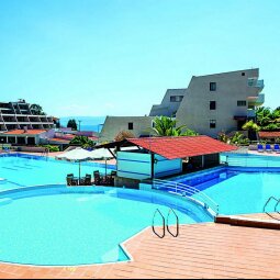 К услугам гостей 3 бассейна с морской водой, один из них олимпийского размера, лежаки и зонты.