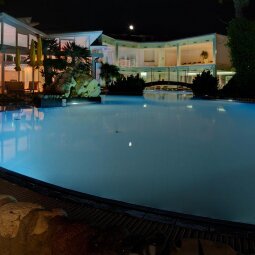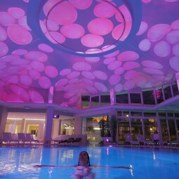 Завораживающее вечернее шоу в крытом бассейне с видеопроекцией на куполе, ароматерапией и музыкой.