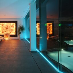 Plaza Sensory Pool – это полное погружение, сочетающее тактильное удовольствие от термальной воды с динамическими аудиовизуальными стимулами, которые создают новую концепцию оздоровления и позволяют открыть для себя отдых на термах в совершенно новом инновационном стиле.