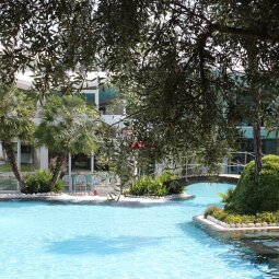 3 бассейна. В проживание для каждого клиента входит: посещение 2-х термальных бассейнов (крытого и открытого) температура термальной воды 35-36°C. Гидромассаж, приятные струйные массажи, подводные коврики и дорожки противотока для оздоровления ног и повышения мышечного тонуса.