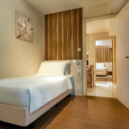 Просторный стильный люкс с 2 спальнями. К услугам гостей кровать размера «king-size» и односпальная кровать. Среди удобств гостиная зона и мини-кухня. В собственной ванной комнате предоставляются туалетно-косметические принадлежности.