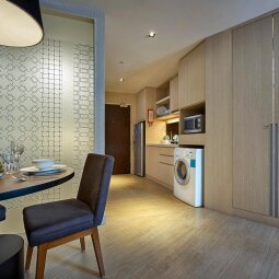 Стильный номер с 42-дюймовым телевизором с плоским экраном, кроватью размера «king-size» и кондиционером. К услугам гостей мини-кухня и стиральная машина. Собственная ванная комната укомплектована туалетно-косметическими принадлежностями.