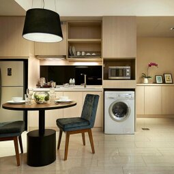 Все полностью меблированные апартаменты обставлены современной мебелью и оснащены кондиционером. В гостиной зоне есть телевизор с плоским экраном и принадлежности для чая/кофе. Для вашего удобства есть кухня и стиральная машина. В собственной ванной комнате есть душ и туалетно-косметические принадлежности.