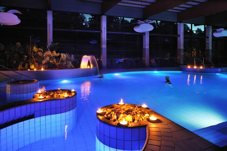 - "Лагуна" – водный рай с закрытыми и открытыми термальными бассейнами с многочисленными водными и воздушными массажами, водопадами, "гейзерами" и джакузи. Для детей - открытый бассейн с "островом гусаров" и закрытый бассейн. Все бассейны имеют t воды от 27°C до 32°C .