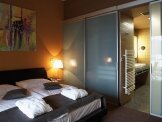 В апартаментах: спальная и гостиная, разделенные дверями-купе, французская кровать 180 х 200, ванная комната (душ/ванна), фен, мини-бар, спутниковое ТВ, радио, телефон, сейф, кондиционер.