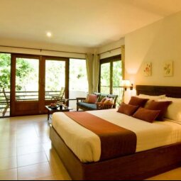Площадь номера 55 кв.м. Максимальное размещение 3 человека. Номера с видом на сад. Покрытие пола-кафель. В ванной комнате ванна и душ. Встроенный биде. Фен. Индивидуальный кондиционер. Телефон (платно), примерная стоимость 150 бат/минута. Плазменный TV, есть русский канал (RTR). Минибар (платно). Сейф. Wi-Fi (платно). Балкон 5 кв.м, есть шезлонг. В номере есть чайные принадлежности, DVD. Дополнительная кровать (платно). В ванной комнате есть банные принадлежности (шампунь, мыло). Уборка номера ежедневно, смена белья 2 раза в неделю.
