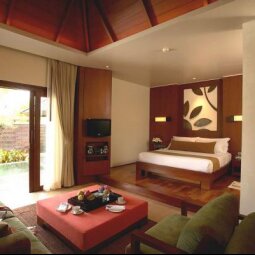 Площадь номера 80 кв.м. Максимальное размещение 3 человека. Покрытие пола-кафель. Ванная комната 15 кв.м, душ, встроенный биде. Фен. Индивидуальный кондиционер. Телефон (платно), примерная стоимость 150 бат/минута. Плазменный TV, есть русский канал (RTR). Минибар (платно). Сейф. Wi-Fi (платно). Терраса 5 кв.м, есть шезлонг. В номере есть чайные принадлежность, DVD. Дополнительная кровать. Уборка номера ежедневно, смена белья 2 раза в неделю.