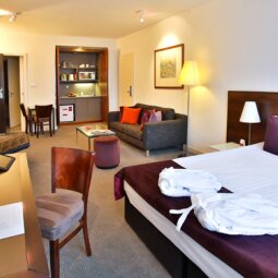 В ближайшем ресторане Kánaán подают блюда национальной и международной кухни, а в соседнем ресторане Trofea Grill гостям предлагают потрясающий "шведский стол" без ограничения подходов, включая напитки.