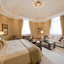 В номере Presidential Suite (240 кв.м): ▪ раздельные спальня с кроватью king-size и гостиная с мягкой мебелью ▪ оборудованная кухня▪ столовая▪ кондиционер ▪ телефон ▪ телевизор ▪LCD HDTv▪Hi-Fi systems ▪чай/кофе ▪комплимент от отеля при заезде▪ индивидуальный расчетный час ▪мини-бар ▪ интернет▪ ванная комната (ванна/душ, туалет, фен) ▪бесплатное пользование зоной Royal SPA и зоной отдыха, библиотекой, определенными услугами бизнес-центра ▪ выбор закусок и канапе каждый день.