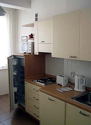 Резиденция расположена в самом центре города, в нескольких минутах ходьбы от Староместской площади. К Вашим услугам -12 двухкомнатных номеров с гостиной, спальней и кухонным уголком с холодильником, микроволной печью, посудомоечной машиной.