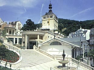 Действительным и смысловым ядром всего объекта изначально был монументальный каменный барельеф "Духа источников" хозяину и хранителю всех карловарских источников. Факт, что этот загадочный образ будет в 2001 году после многих лет забвения воскрешен, является действительно потрясающей новостью не только для пациентов, которые будут наполняться здоровьем и жизненной силой карловарской воды в Замковых Лазнях, но и вообще для всех гостей курорта и горожан Карловых Вар.