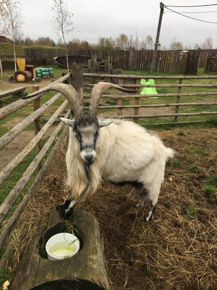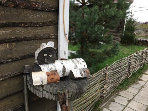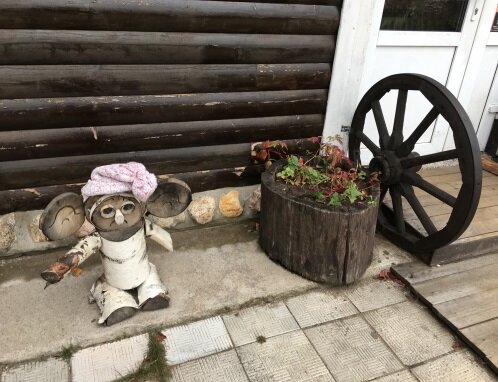 Наша первая остановка - фермерская усадьба. По факту она техническая – здесь есть бесплатный туалет, и возможность взять чай или кофе, попробовать традиционную карельскую выпечку - калитку (с творогом, картошкой, пшеном) и другие продукты. В летний период работает небольшой контактный зоопарк (кролики, козы, козел, есть небольшой пруд с уточками). Много интересных деревянных поделок (лягушка, кролики, кошечка, собачка, сова, Чебурашка и другие). Отличное место, чтобы легко позавтракать и отправиться дальше!