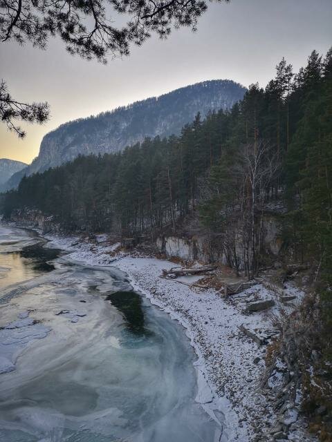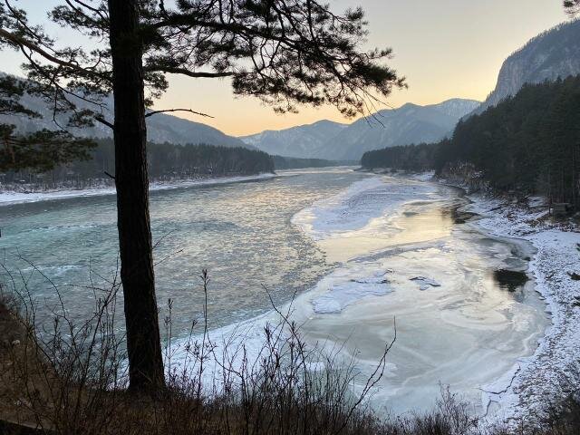 Он встретил гостей солнечной морозной погодой и яркой белизной снега, а также прекрасной девушкой-администратором, которая показала группе всю инфраструктуру. Нас накормили вкуснейшим обедом в ресторане «Грааль» - в зимнее время года здесь проходят все завтраки, обеды и ужины. Далее мы поехали в ОЭЗ «Бирюзовая Катунь», по дороге рассматривая огромное количество вариантов размещения, а также сделав остановку для того, чтобы сделать одни из лучших фото этой поездки – конечно же, речь о реке Катунь!