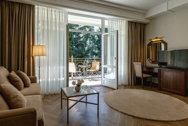 - размещение в одном из лучших отелей Крыма - "Пальмира Палас" 4* в окрестностях Ялты, гарантированные двухместные номера категории "супериор улучшенный с видом на горы";