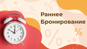 При раннем бронировании за 60 дней до заезда, скидка 10% (только от стоимости проживания).